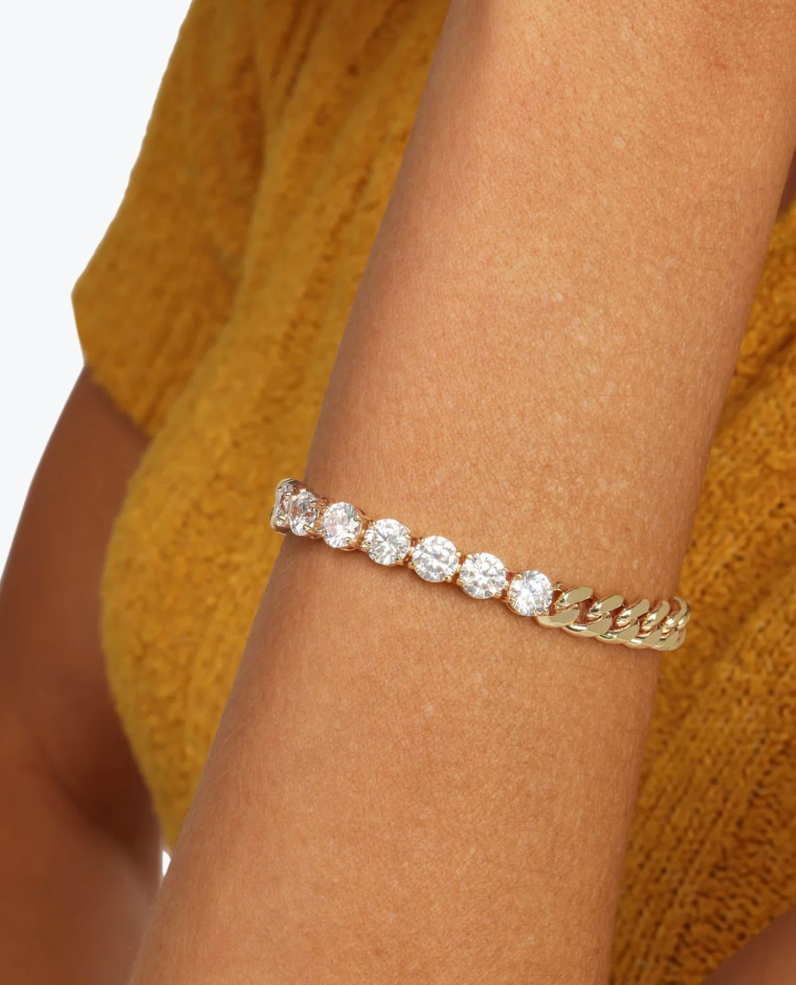 Experience the perfect fusion of style and sparkle with the Melinda Maria Julian Loves Diamonds Bracelet. This best-selling Cuban chain is elevated by the addition of shimmering simulated diamonds, creating a striking balance of boldness and brilliance. It’s a sophisticated statement piece that adds timeless elegance to any outfit, proving that diamonds truly enhance every look.