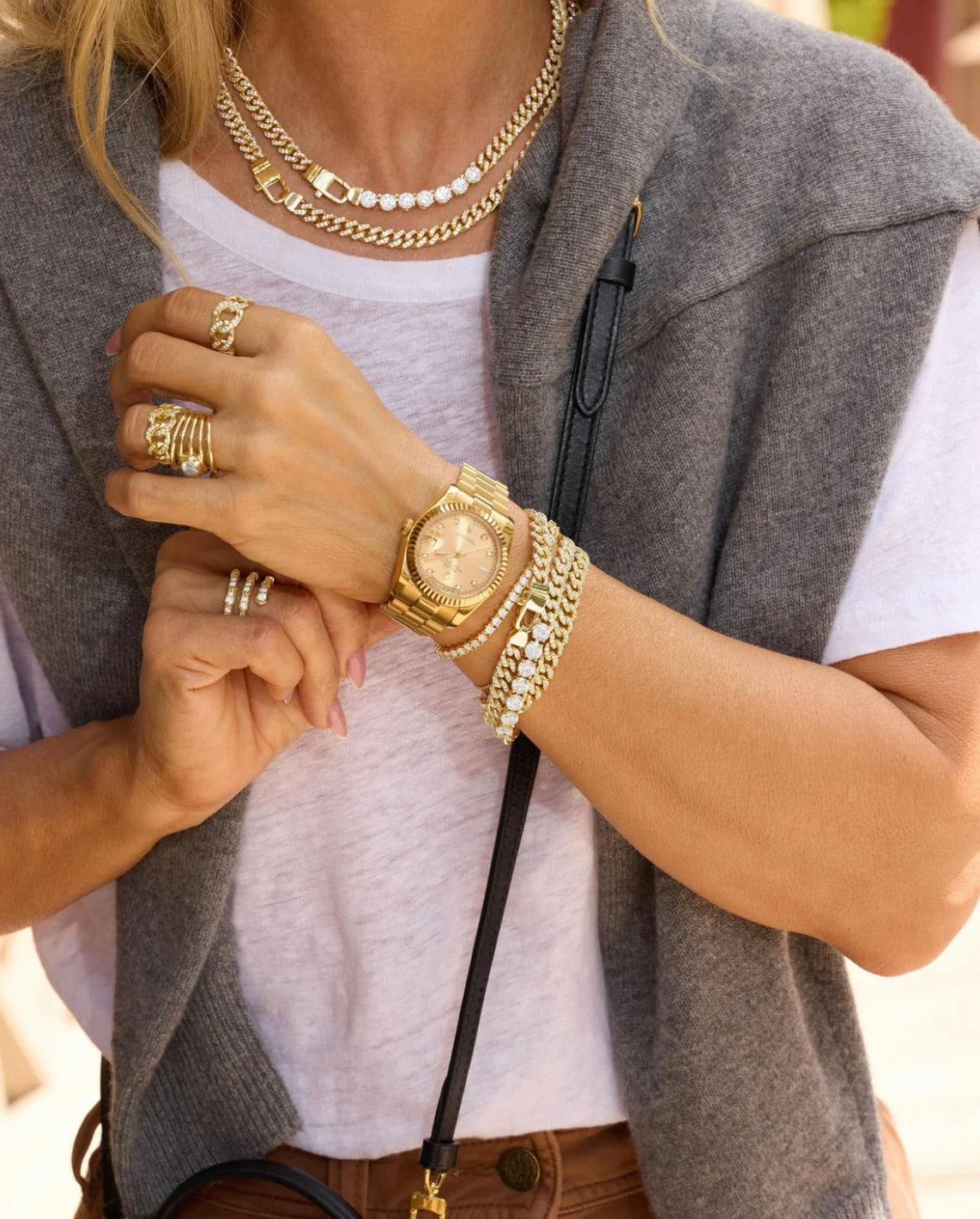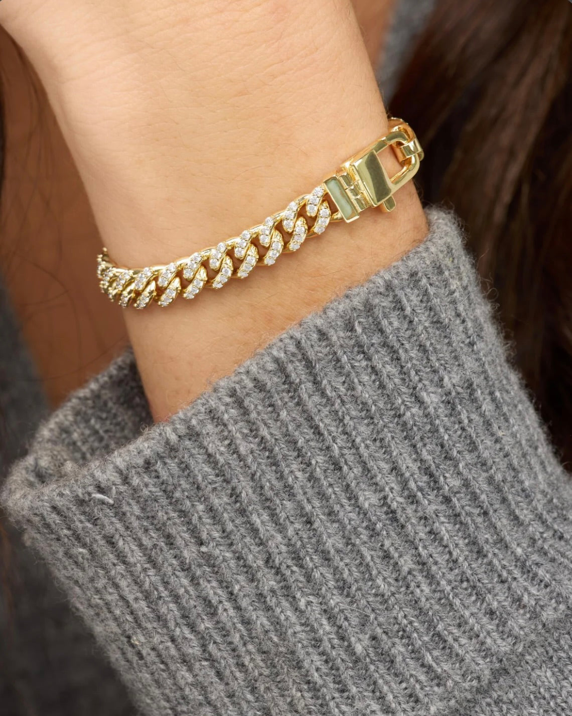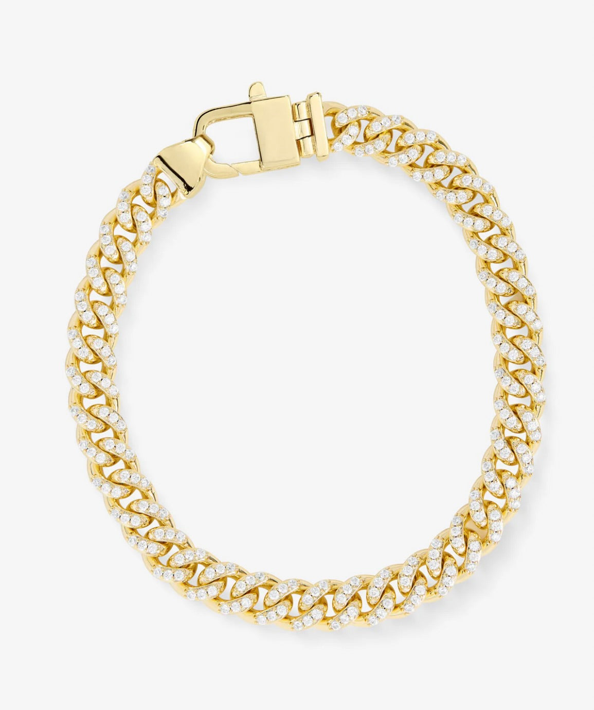 Chains and diamonds converge in this elevated take on a timeless classic. The Julian Cuban Chain Bracelet features a substantial 6.8mm profile adorned with pavé diamond detailing that catches light from every angle. Bold enough to command attention as a standalone piece, yet refined enough to layer seamlessly with your existing collection.