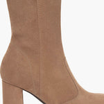 Crafted in Italy, this sleek block-heel boot features a refined suede finish that elevates its versatile, timeless elegance.