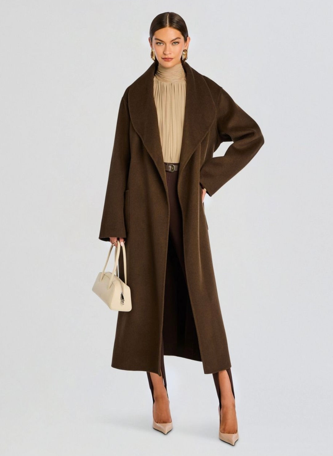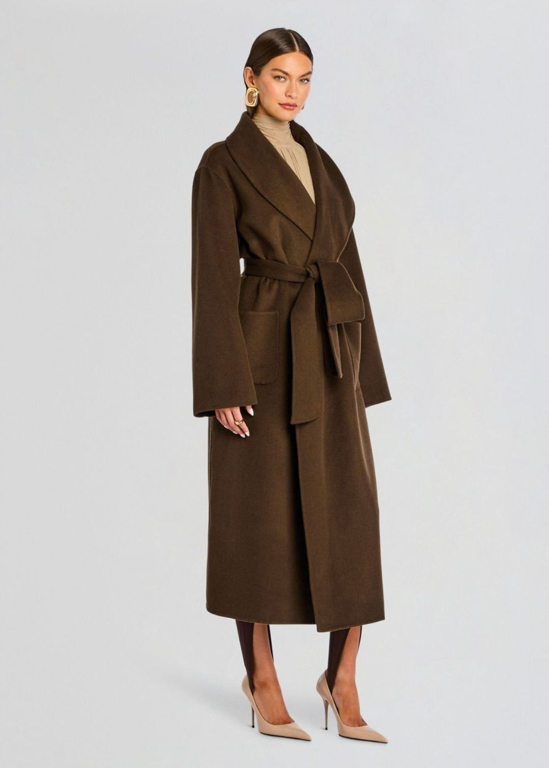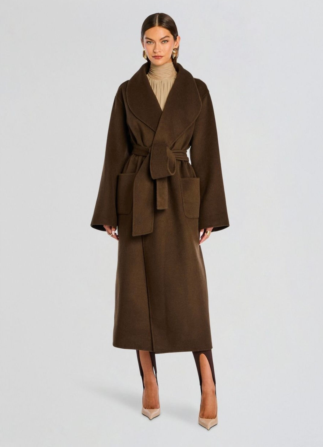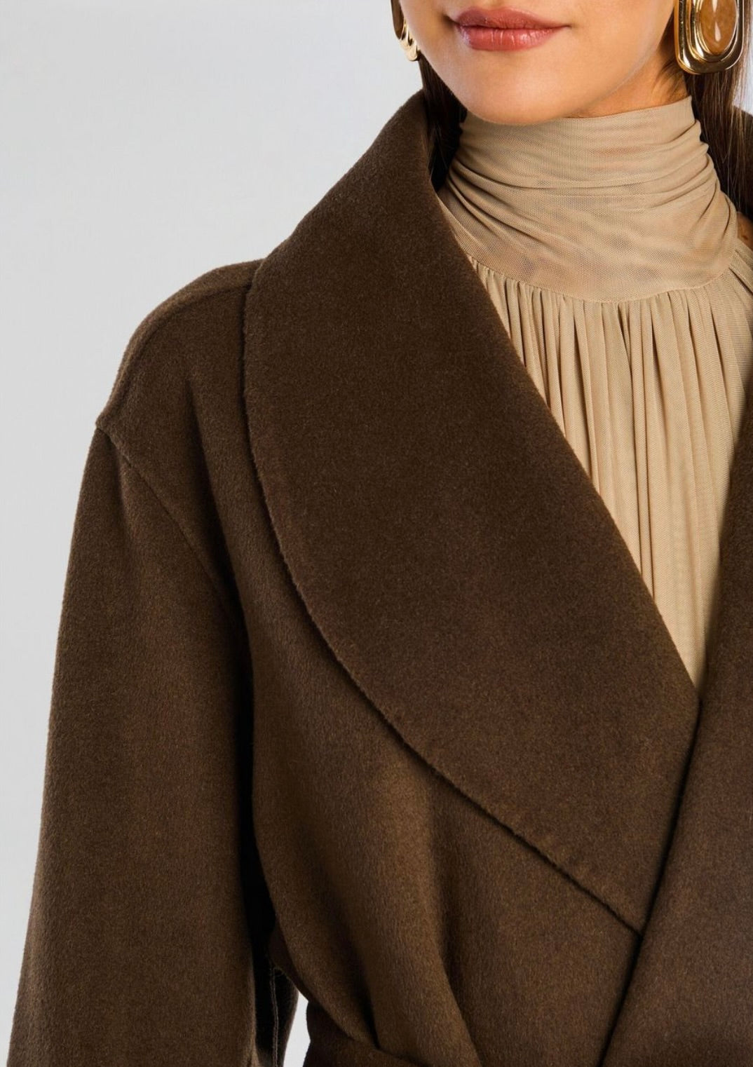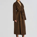 The SEROYA Mavis Wool Coat in Slate Brown offers a refined blend of comfort and elegance. Crafted from a soft wool mix, it features a relaxed collar and an open-front design for effortless layering. Practical front patch pockets add subtle utility, while the removable waist belt allows you to define your silhouette with ease. Perfect for elevating any outfit with understated sophistication.