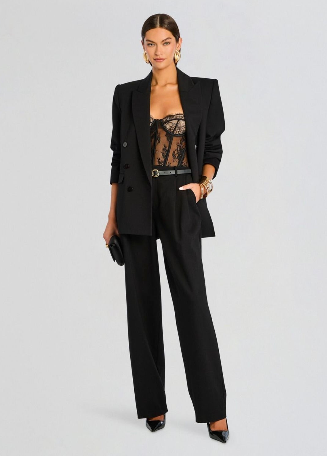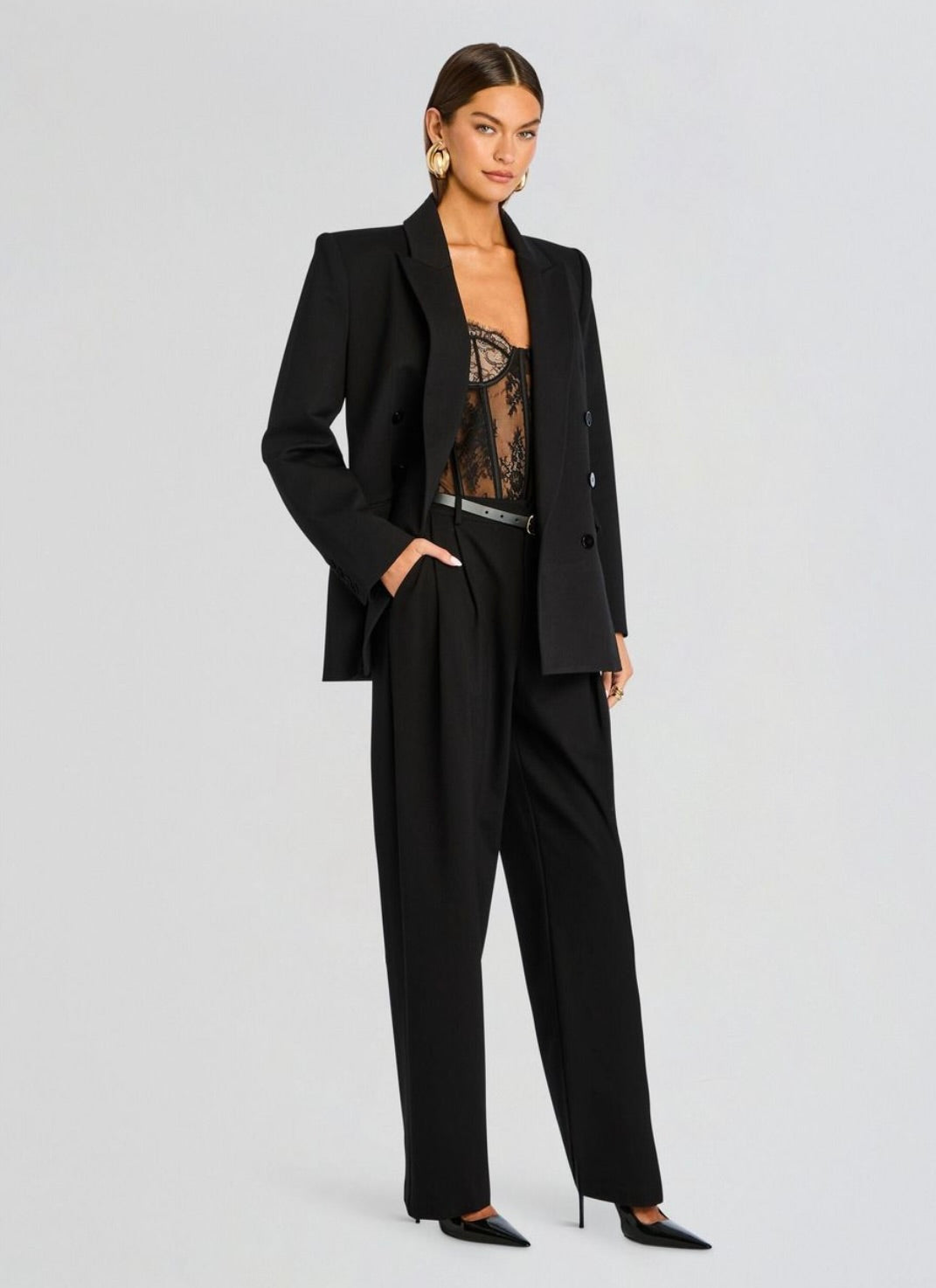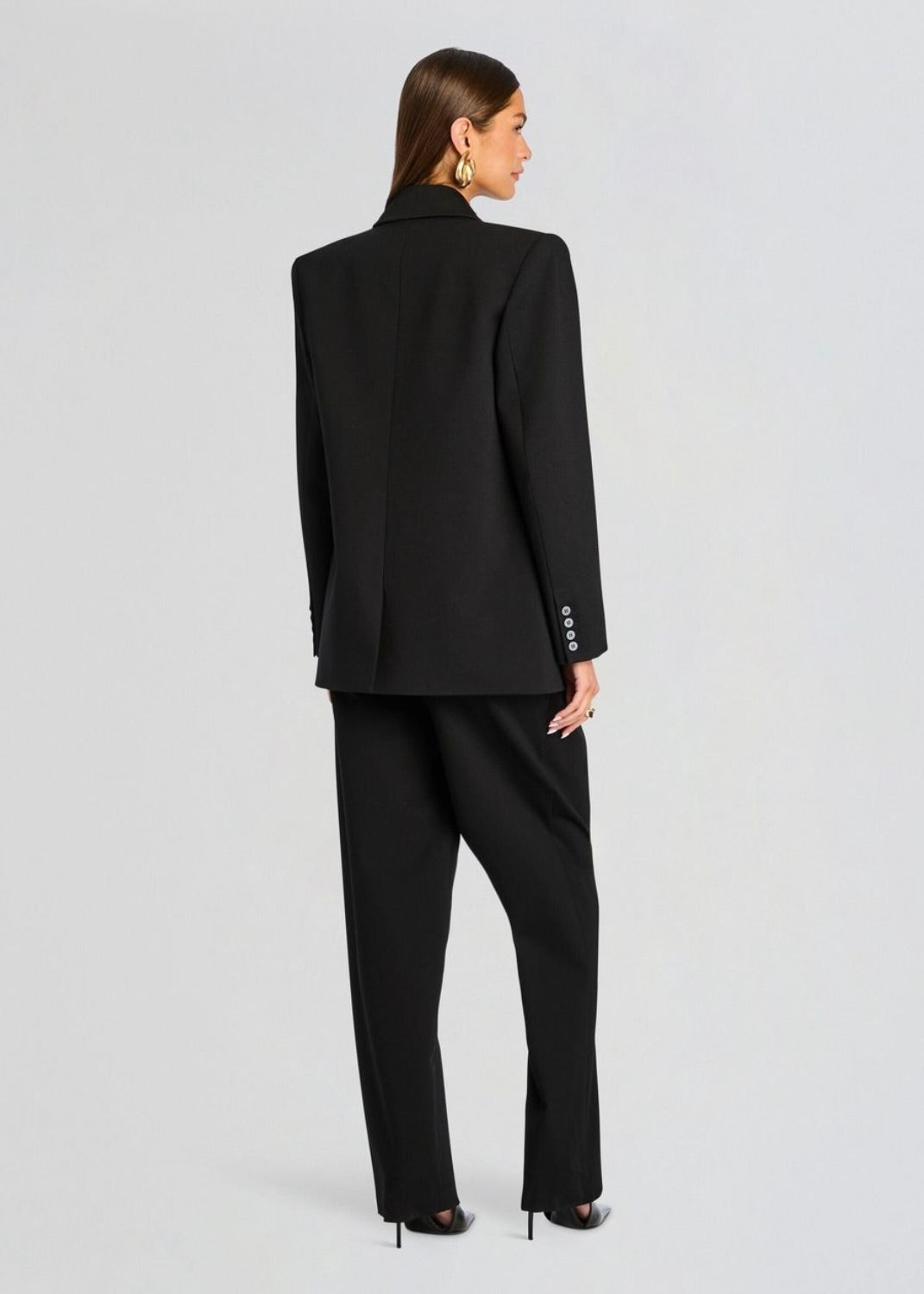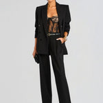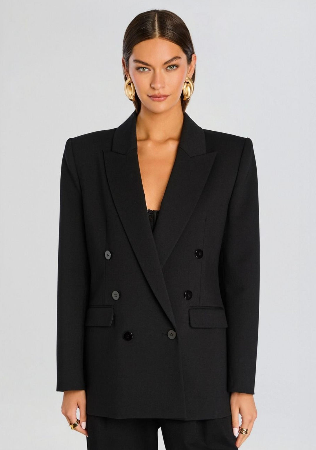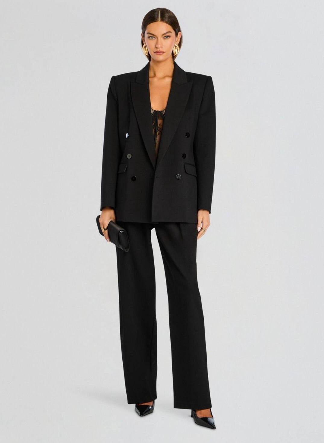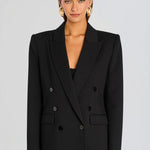 The SEROYA Stefania Blazer in Black is designed with a classic double-breasted silhouette and structured shoulders for a commanding presence. Featuring front flap pockets, it balances elegance with functionality, perfect for making a poised and polished statement in any setting.