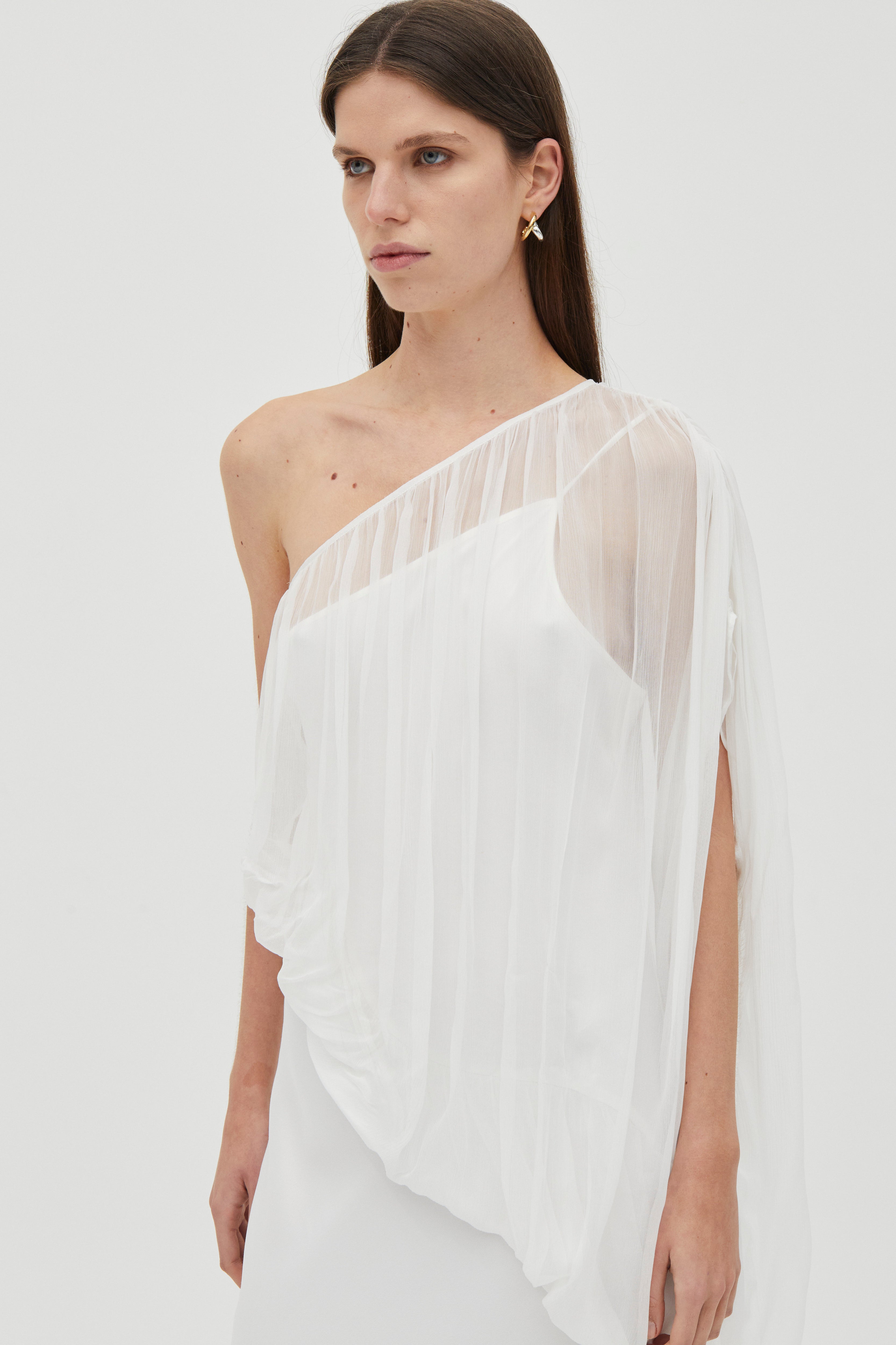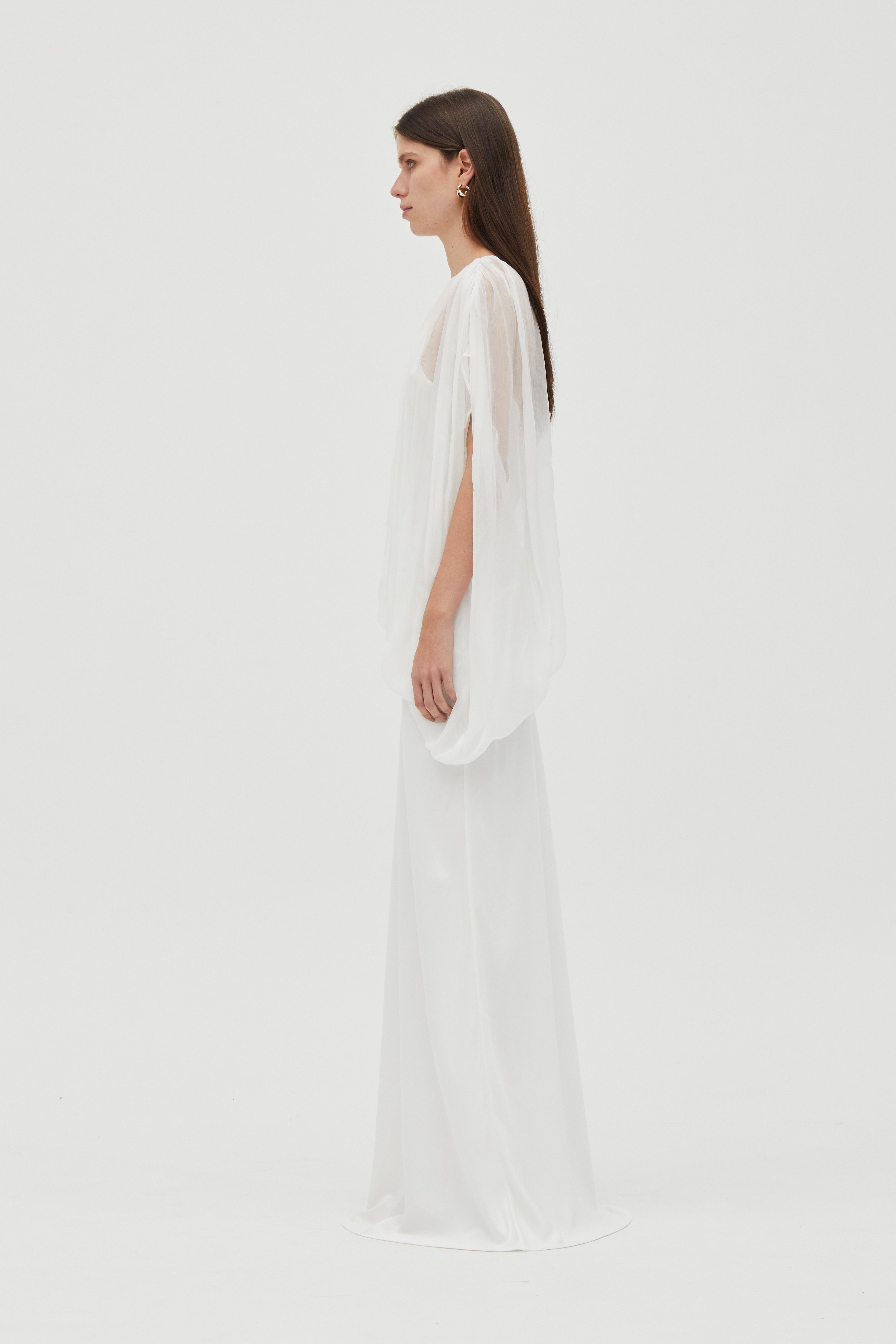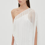 Attached asymmetric chiffon billow overlay with subtle crinkle finish