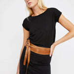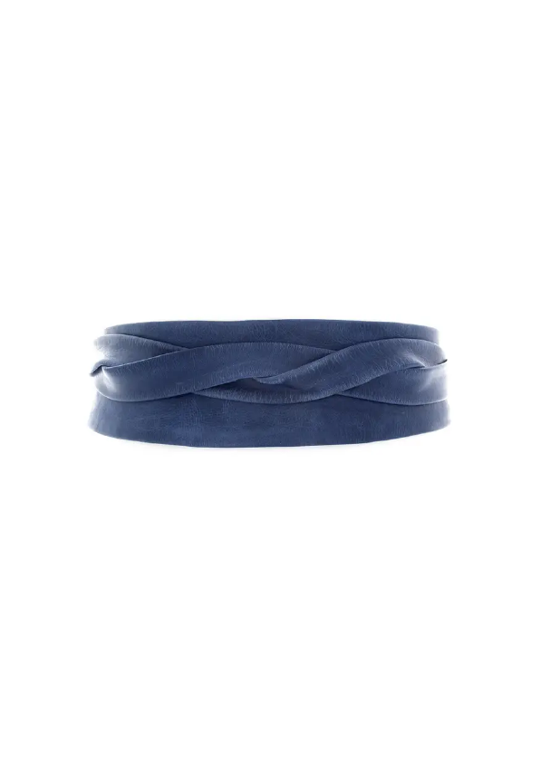 Our wrap belts have a waxed finish that begins to break as the belt is styled and worn. It creates natural scratches giving the leather a unique distressed and aged look. This characteristic is why the leather is so comfortable to wear. OS 99”/251 cm (L) x 3”/7.5 cm (W) - Jean size 0-22